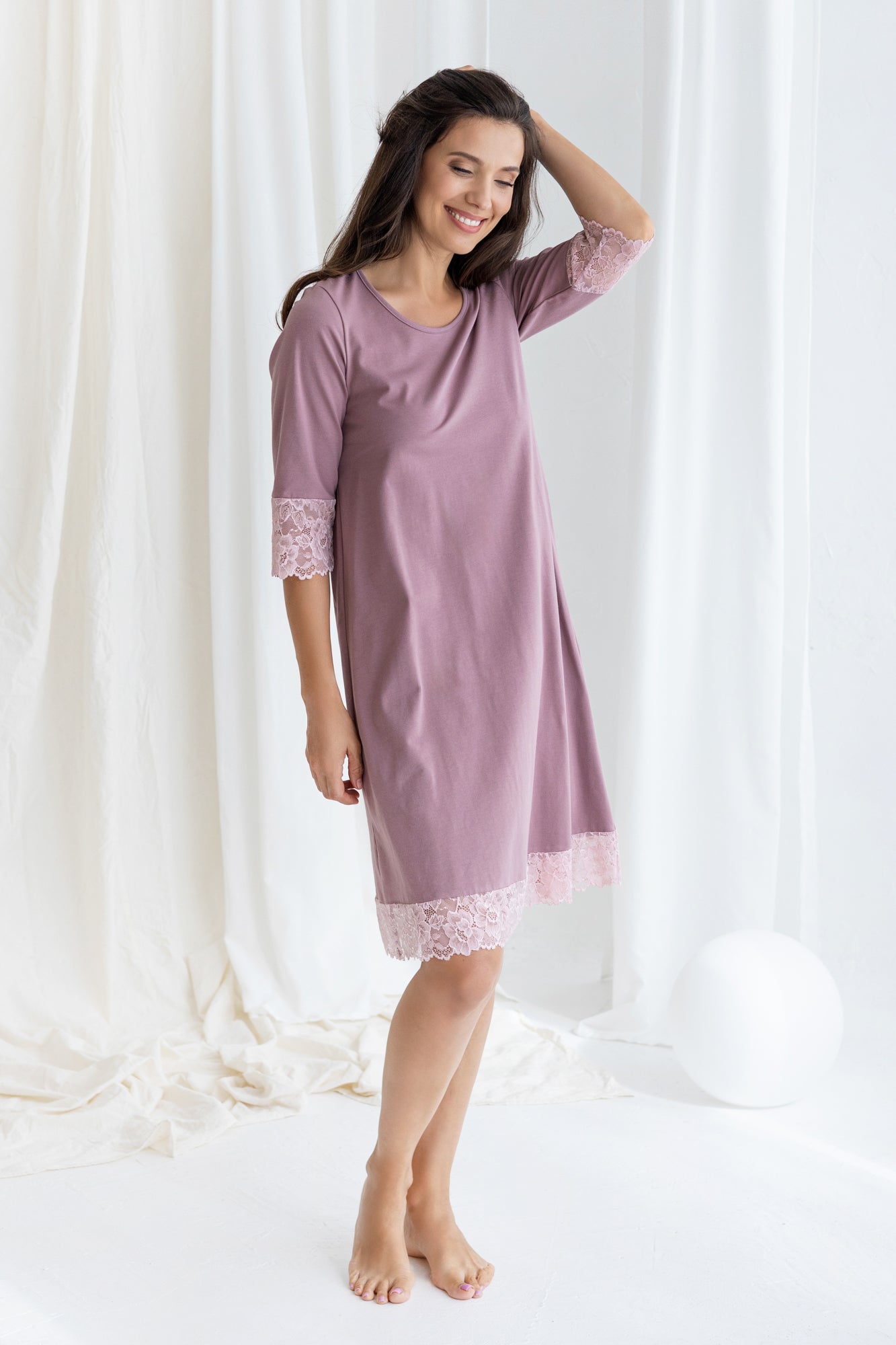 Medvilniniai naktinukai su rankovėmis "LUCCE" kavos rožinė