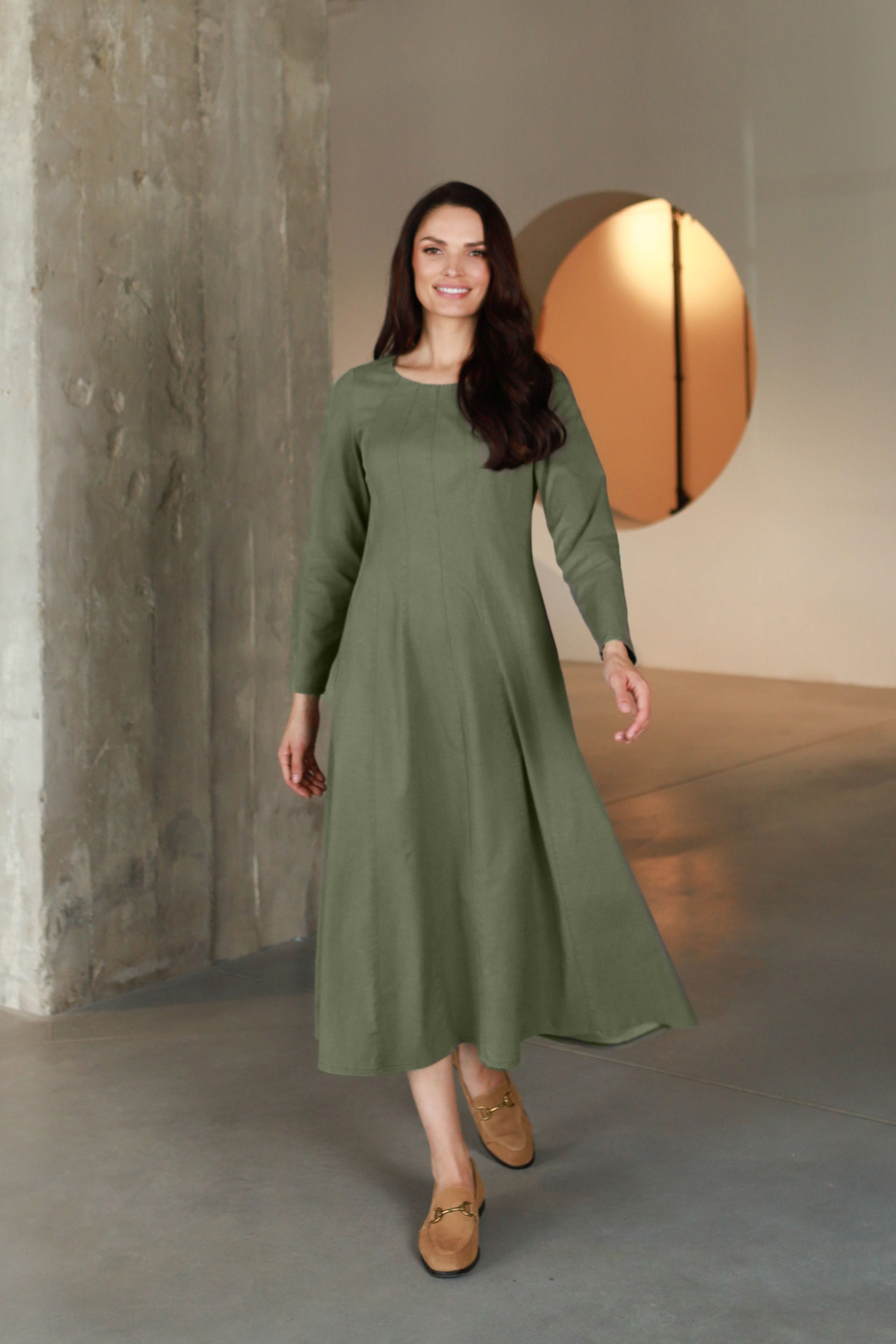Suknelė dygsniuotu priekiu „ONYKSA“ alyvuogių pilka