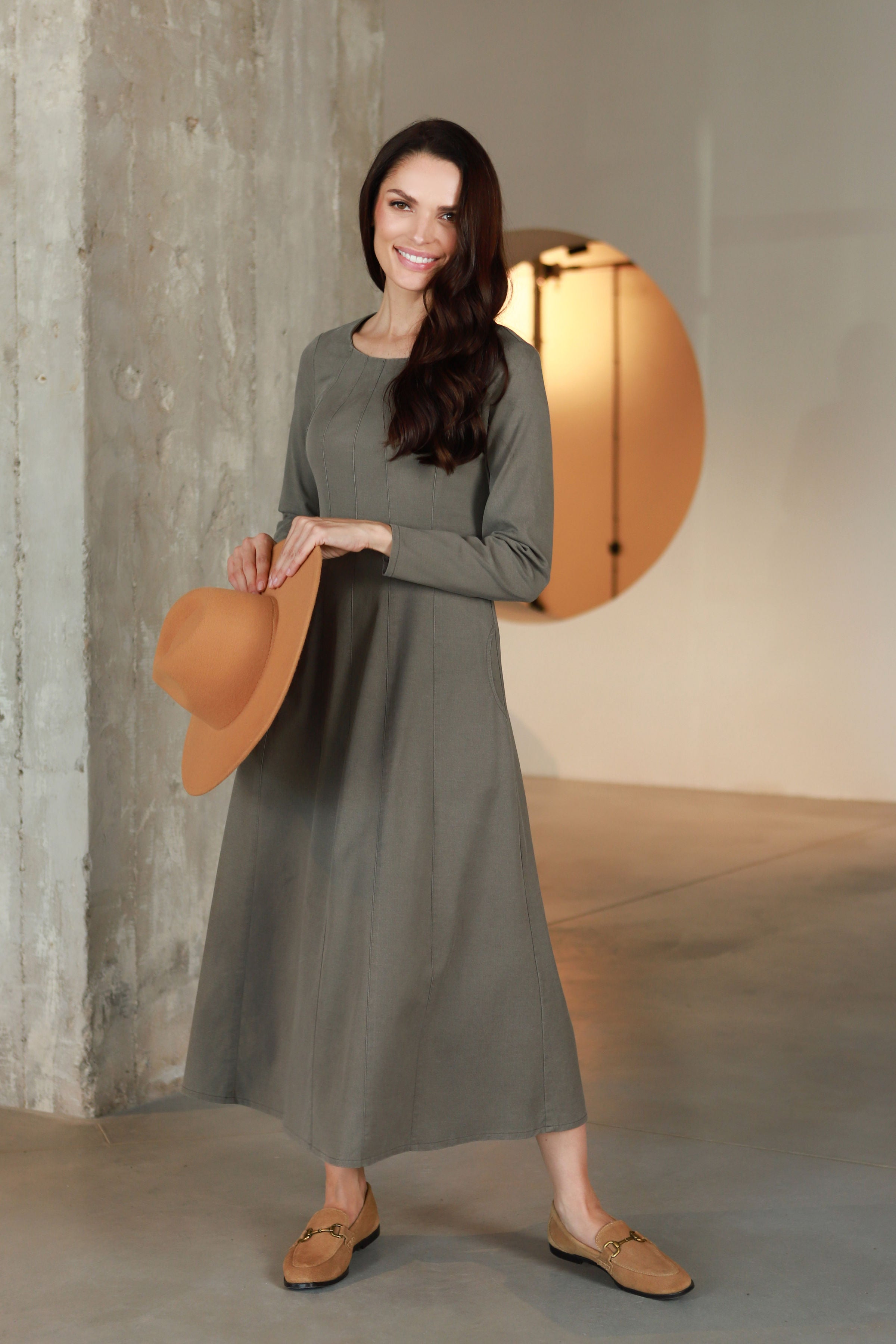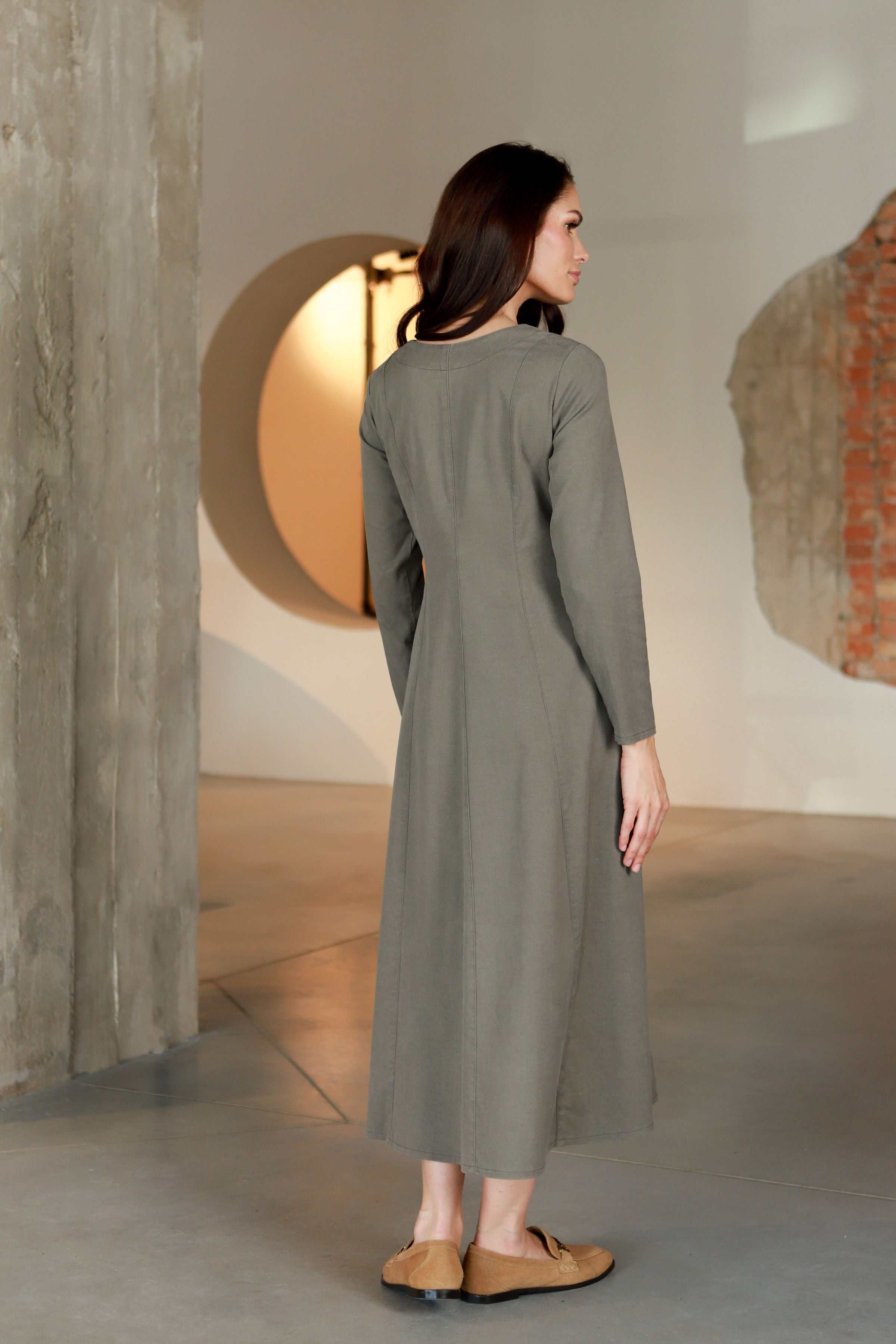 Suknelė dygsniuotu priekiu „ONYKSA“ žalvario pilka