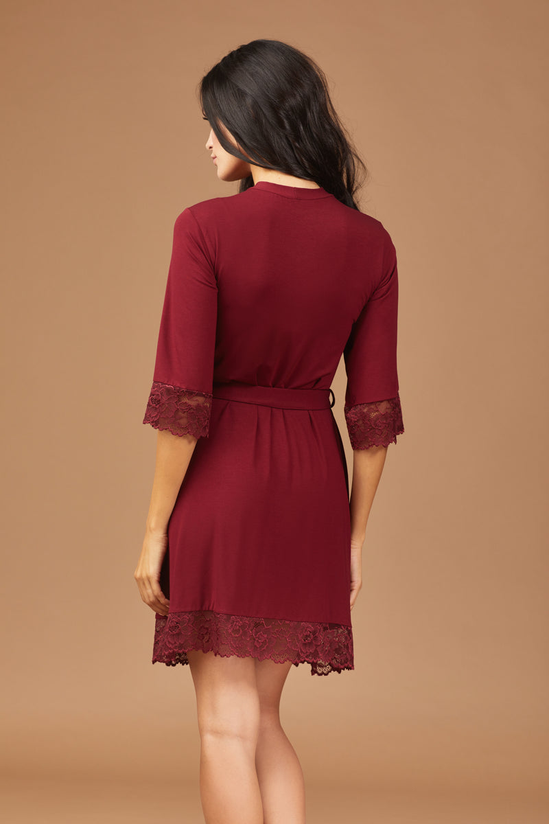 Trumpas viskozinis chalatas su nėriniu "STELLA" bordo