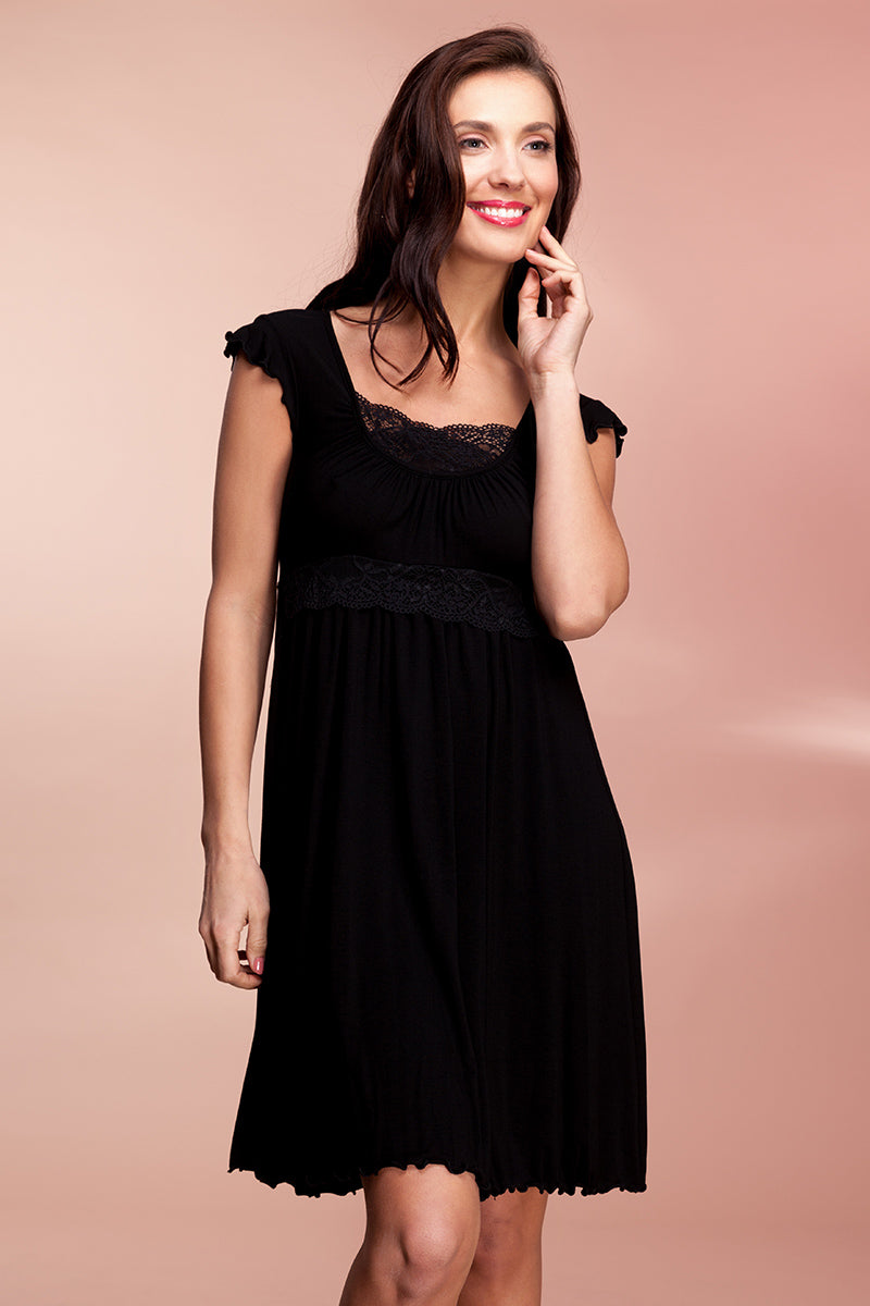 Viskoziniai naktinukai trumpomis rankovėmis "FIORELLA" juoda